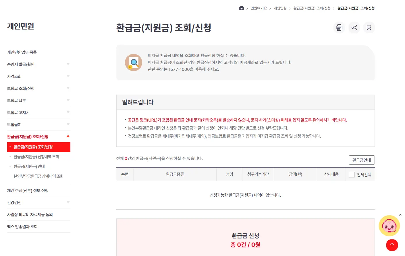 국민건강보험 환급금 조회 신청 결과